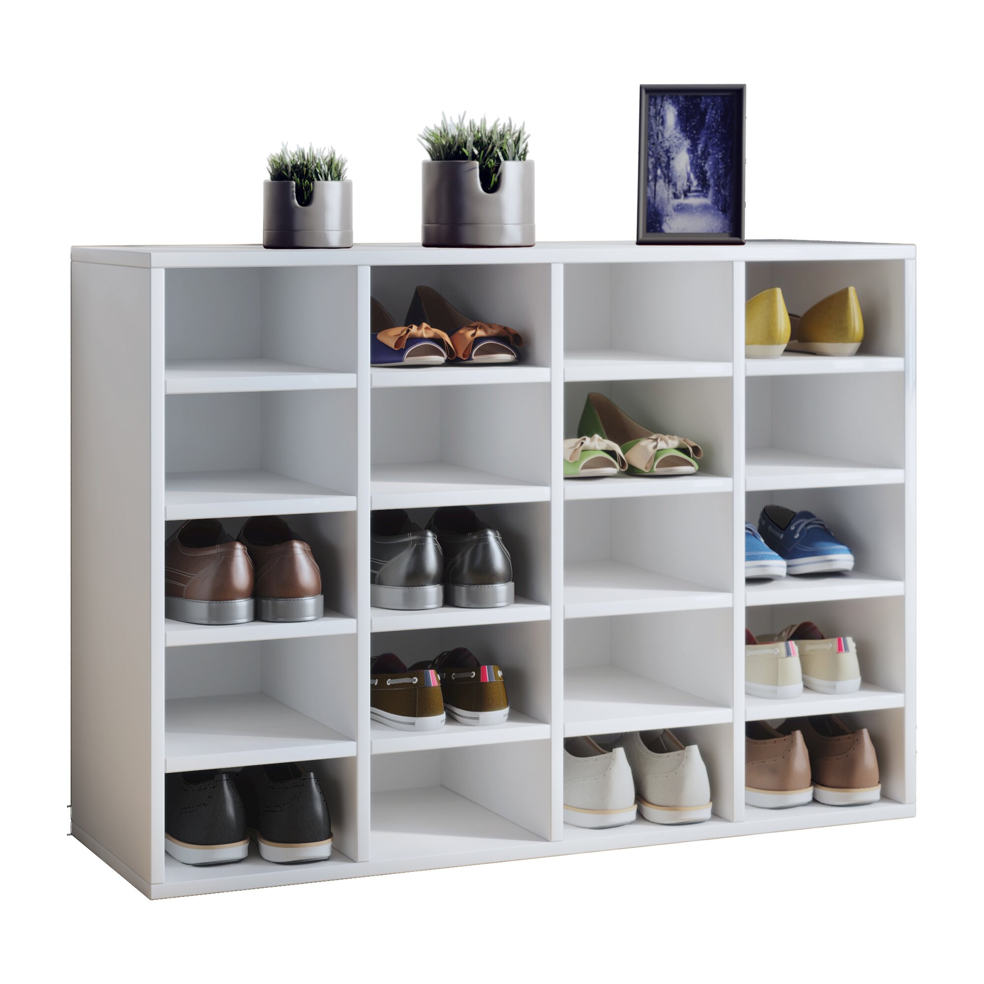 Highlights: Beschläge aus hochwertigem Metall. 20 geräumige Fächer für bis zu 20 Paar Schuhe. Der Schuhschrank „Hinsol L“ ist ein kleines Raumwunder. Das Möbel verbindet die Kombination aus Stauraum und Deko wie kaum ein anderes Möbelstück. 20 Fächer ermöglichen einen ordentlichen Stauraum für 20 Paar Schuhe oder andere Utensilien. Die Liebe zum Detail macht einen VCM Schuhschrank zu etwas ganz Besonderem. Maße pro Fach: ca. B. 21 x H. 12 x T. 33 cm