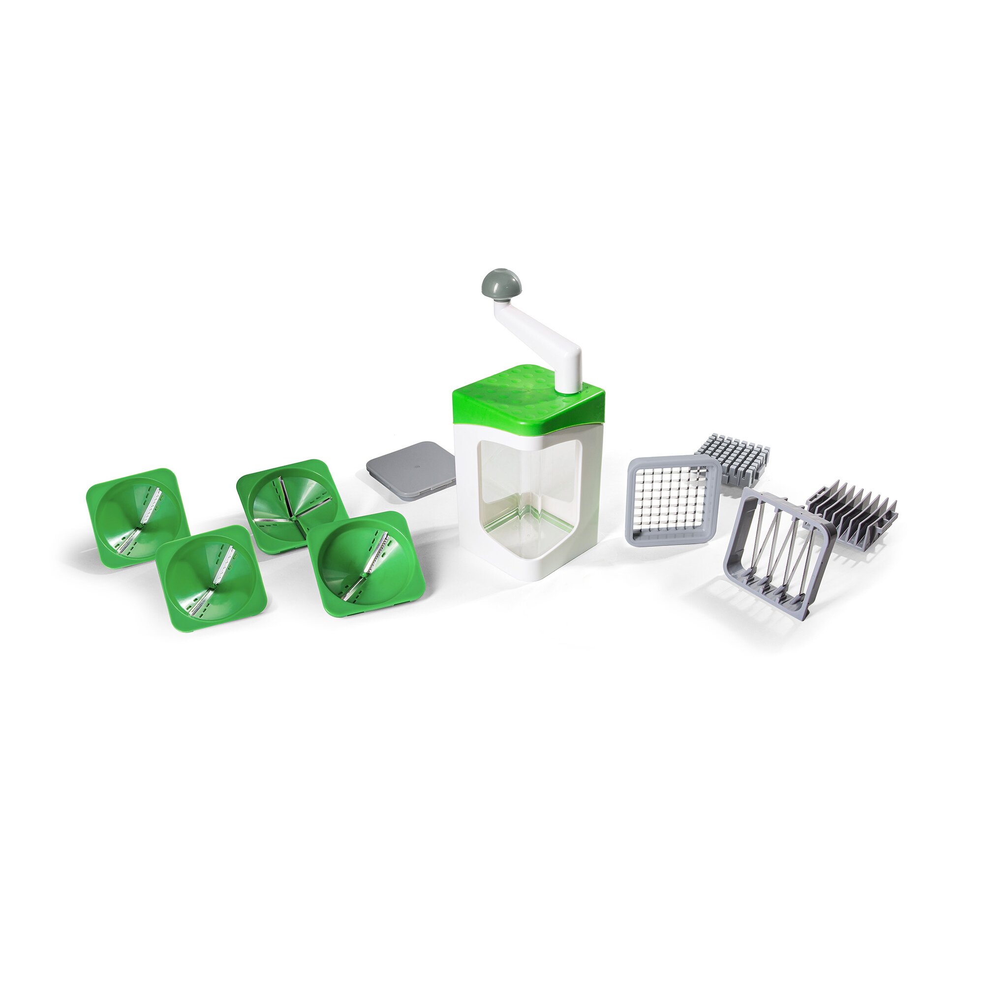 Mit diesem vielseitigen Gerät verwandeln Sie Obst und Gemüse im Handumdrehen in Juliettis, Spiralen, Würfel oder Stifte. Die extra-scharfen Edelstahlklingen garantieren präzise Schnitte, während der einfache Wechsel zwischen den Schneideinsätzen für maximale Flexibilität sorgt. Perfekt für kreative Gerichte und schnelle Zubereitung!
