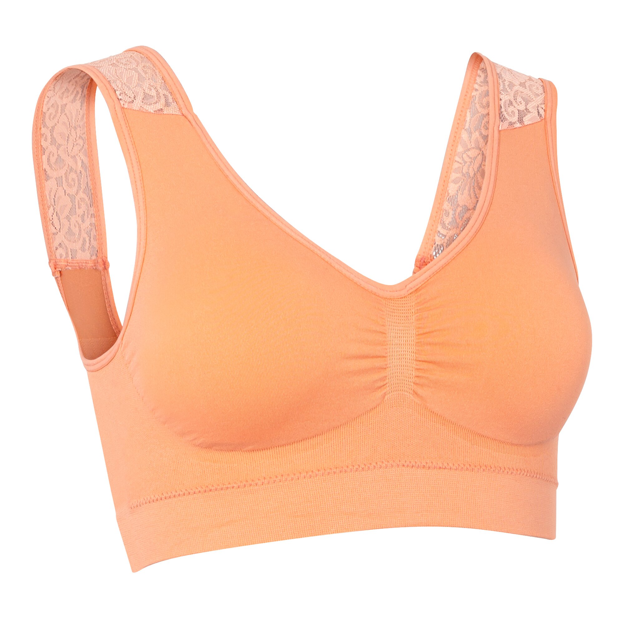 Spitze: sitzt wie eine zweite Haut! sanft formende Cups ohne Verschlüsse mit breitem Unterbrustband Bequemes Tragegefühl, attraktives Design und guter Halt – hier passt alles. Das elastische, hautfreundliche Material dieses Wohlfühl-BHs ist kaum spürbar. Einfach überziehen – ohne störenden Verschlusseinsatz am Rücken. Die weich gepolsterten Cups formen sanft. Mit feinem Spitzeneinsatz an den Trägern