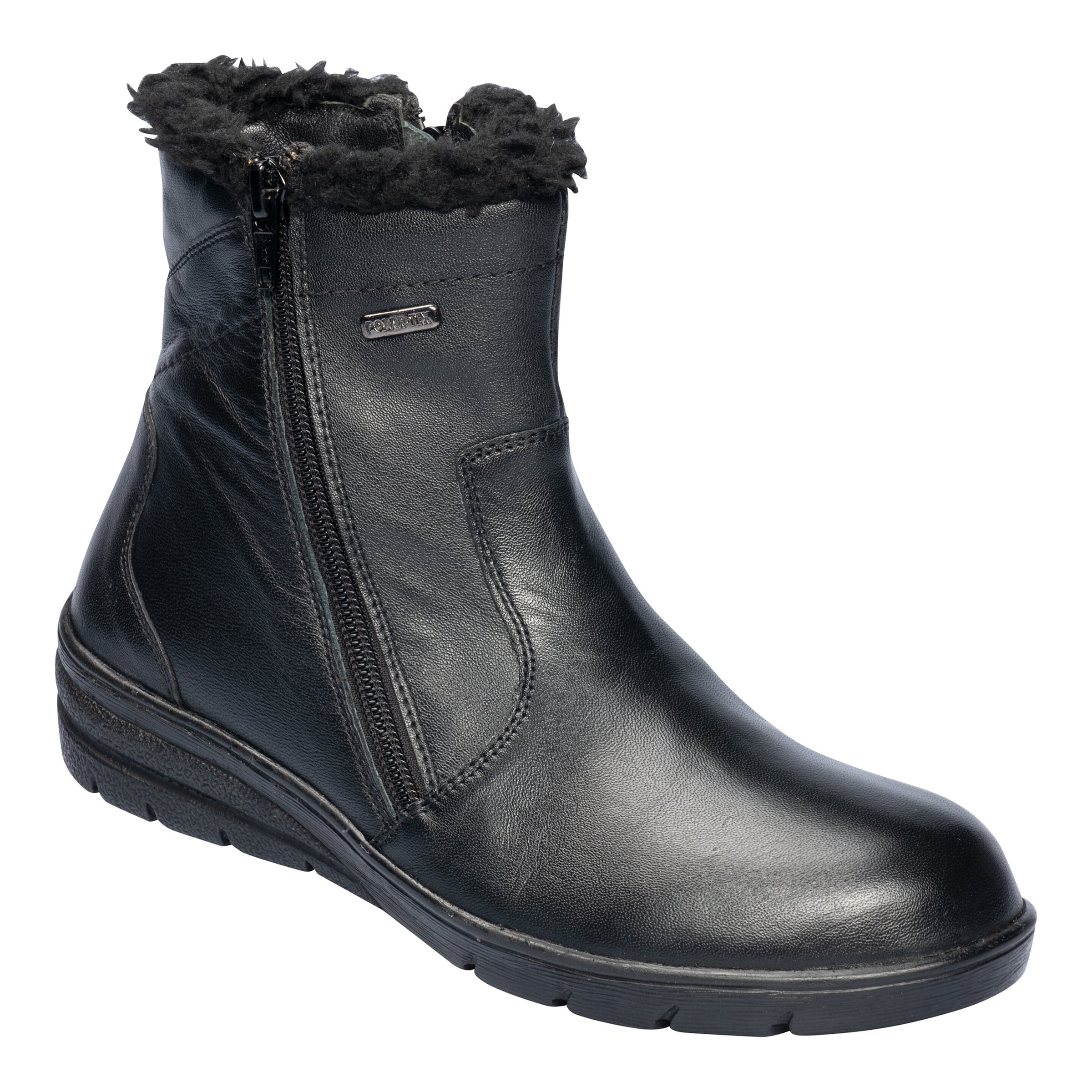 In puncto Komfort lässt diese modische Stiefelette aus hochwertigem Leder keine Wünsche offen: Mit dem warmen Filzfutter und der bequemen Weite ist sie der perfekte Begleiter für jeden Tag. Die 2 praktischen Reißverschlüsse sorgen für einen leichten Ein- und Ausstieg.