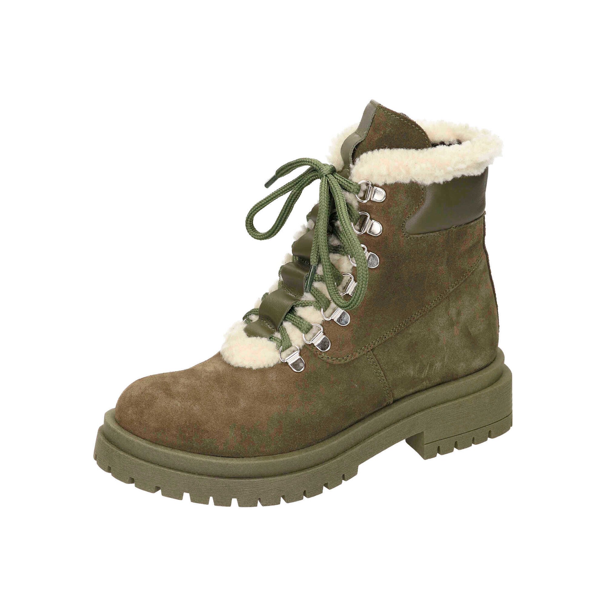 khaki, Veloursleder/Textil/Synthetik, Reißverschluss, gefüttert 100% Polyester, gefütterte Decksohle, TR-Sohle – Schuhweite: normal –