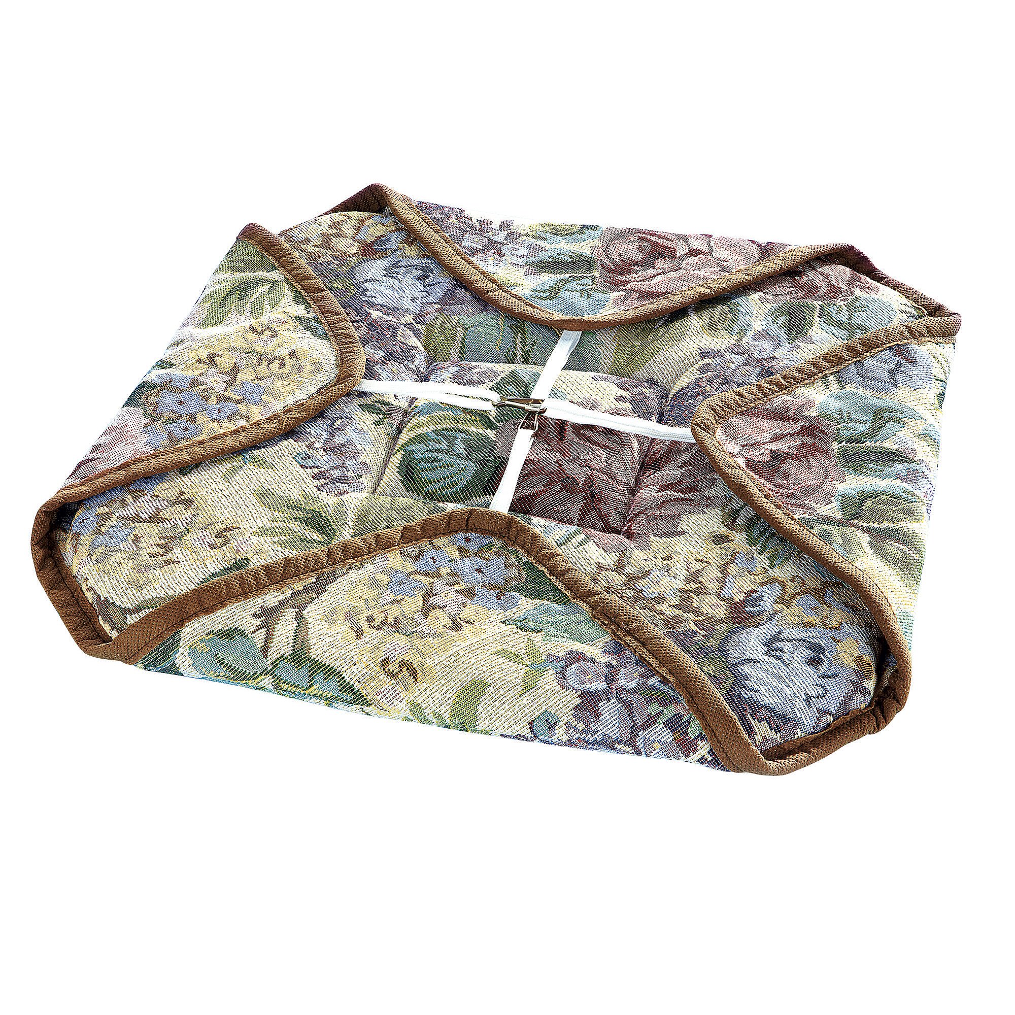Das ändert sich mit dem Stuhl-Kissen „Gobelin“. Seine weiche Polsterung erhöht den Sitzkomfort. Die Gobelin-Optik frischt betagte Stühle auf. In gewebter Machart. Einfache und schnelle Fixierung mit Gummibändern.