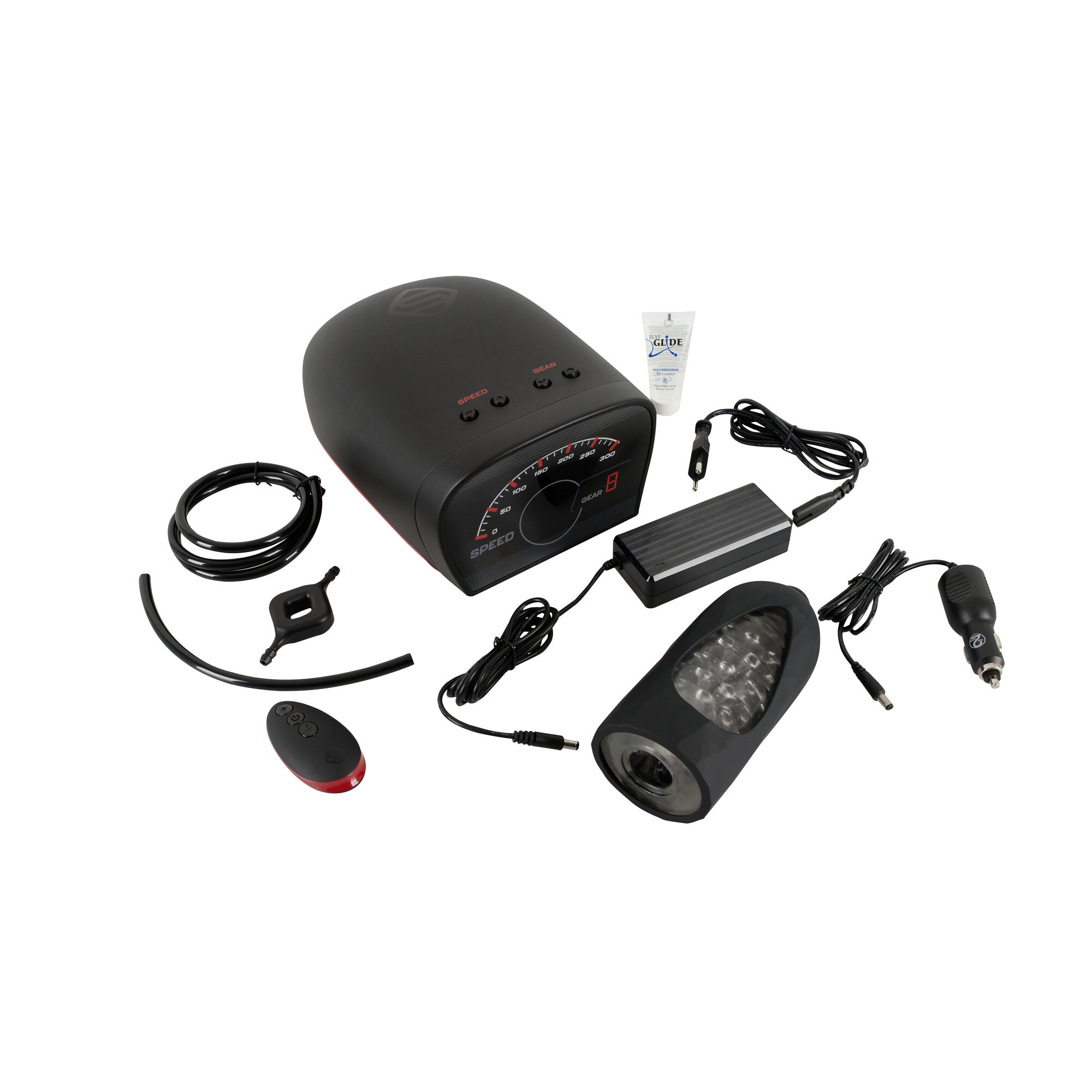 Die konsequente Weiterentwicklung des ersten Suck-O-Mat – Netzgebundener Masturbator im sportlich-eleganten Design mit LED-Tacho-Anzeige. Mit einer Motorleistung von 60 W ist der Suck-O-Mat 100 % leistungsstärker als sein Vorgänger und bietet bis zu 200 Saugimpulse pro Minute. Dazu punktet die Neuauflage mit einer realitätsnahen Blowjob-Simulation der Extraklasse – natürlich, handfrei und aufgeteilt – ähnlich wie bei einem Auto – in 8 + 1 Gänge: 1.Gang: Manuell steuerbarer Saugmodus in 6 Geschwindigkeiten. 2. – 9. Gang: 8 vollautomatische Saugmodi mit unvorhersehbaren Intervallmustern für ein möglichst zufälliges und damit lebensnahes Blowjob-Feeling. Dabei kann der Nutzer jederzeit in die voreingestellten Muster eingreifen und die Geschwindigkeit individuell regulieren – beispielsweise um einen schnelleren Höhepunkt zu genießen oder das Spielchen weiter hinauszuzögern. Der Suck-O-Mat 2.0 fällt dann automatisch in den 1. (manuellen) Gang zurück und hält dort die gewünschte Geschwindigkeit – bis zum Happy End. Auch die Sleeve wurde für den Suck-O-Mat 2.0 weiter optimiert: Sie verfügt nun im Inneren über stimulierende Noppen und kann mit der beiliegenden Tight Fit Manschette kombiniert werden, um den Penis noch stärker zu umfassen und die Stimulation so zu intensivieren. Inklusive Fernbedienung, KFZ-Adapter und schwarzem Filter. AC Power-Adapter 230V Euro Plug, Output 12V. 5V USB Ausgang. Maße: Gesamtlänge: 26,3 cm Einführtiefe: 11 cm Länge Sleeve: 15,7 cm, Ø 2,5 cm (dehnbar)