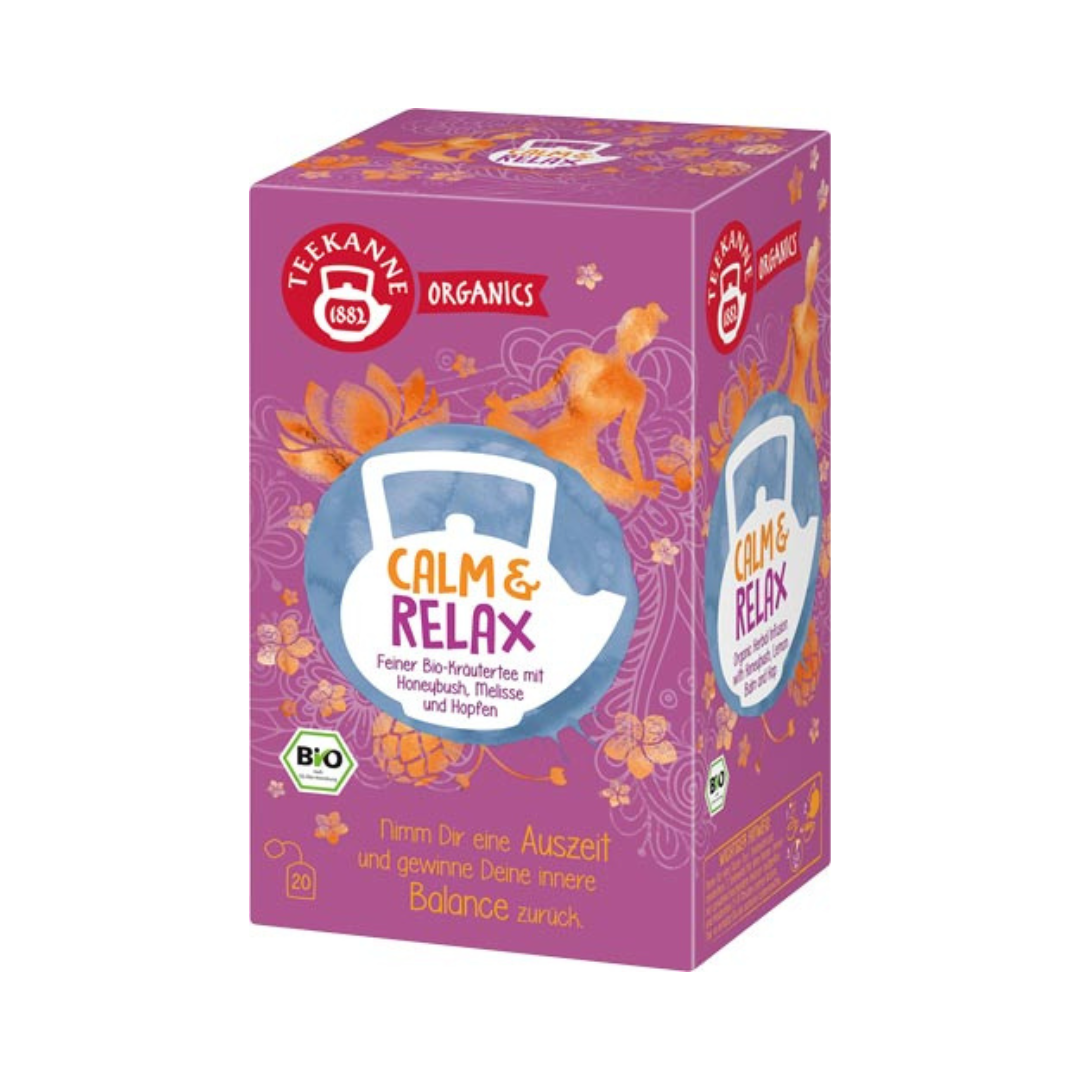 Teekanne Organics Calm & Relax Bio-Kräutertee, 20 Teebeutel im Kuvert Bio-Kräutertee Für die kurze Auszeit zwischendurch der perfekte Begleiter – verbindet den heimischen Entspannungskünstler Hopfen mit exotischem Honeybush und Melisse. Runterkommen und eine Tasse Tee genießen. Netto Füllmenge Bruttogewicht 78.00 Gramm,Nettogehalt 36.00 Gramm Allergene Aufbewahrung Vor Wärme geschützt und trocken lagern Zutaten Zutaten: Zimt, Orangenblätter, Rotbusch, Süßholz, Honigbusch,Kamille, Melisse, Apfelminze, Pfefferminze, Zitronengras, Süße Brombeerblätter, Eibischblätter, Hopfen Nährwerte pro 100g Zubereitet 1 Portion, Energie 2,00 kcal, Energie 9,00 kJ, Fett 0,00 g, davon gesättigte Fettsäuren 0,00 g, Kohlenhydrate 0,40 g, davon Zucker 0,00 g, Eiweiß 0,00 g, Salz 0,00 g , Zubereitet 100 Milliliter, Energie 1,00 kcal, Energie 4,00 kJ, Fett 0,00 g, davon gesättigte Fettsäuren 0,00 g, Kohlenhydrate 0,20 g, davon Zucker 0,00 g, Eiweiß 0,00 g, Salz 0,00 g Ursprungsland ÖSTERREICH Verwendung Sieden – Zubereitung der Speise in kochendem Wasser Nehmen Sie für eine Tasse 1 Teebeutel. Immer mit sprudelnd kochendem Wasser aufgießen und mindestens 5-8 Minuten ziehen lassen. Nur so erhalten Sie ein sicheres Lebensmittel! Marke TEEKANNE Hersteller Name: Teekanne GmbH,Adresse: Münchner Bundesstraße 120, A-5020 Salzburg