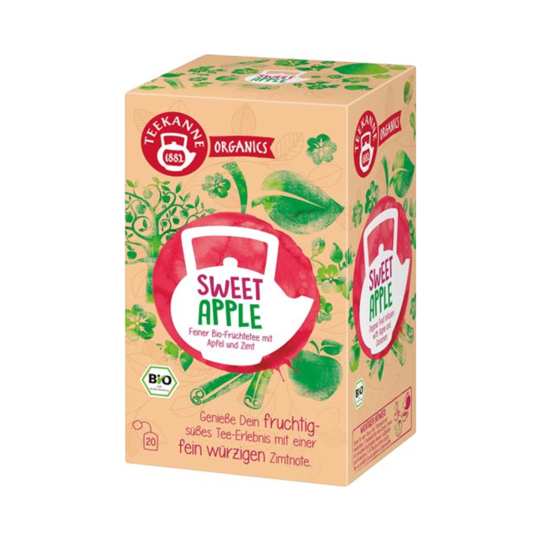 Teekanne Organics Sweet Apple Bio-Früchtetee, 20 Teebeutel im Kuvert Aromatisierter Bio-Früchtetee mit Zimt, mit natürlichem Aroma mit Apfelgeschmack Netto Füllmenge Bruttogewicht 92.00 Gramm,Nettogehalt 50.00 Gramm Allergene Aufbewahrung Vor Wärme geschützt und trocken lagern Nährwerte pro 100g Zubereitet 1 Portion, Energie 16,00 kJ, Energie 4,00 kcal, Fett 0,00 g, davon gesättigte Fettsäuren 0,00 g, Kohlenhydrate 0,70 g, davon Zucker 0,00 g, Eiweiß 0,00 g, Salz 0,00 g , Zubereitet 100 Milliliter, Energie 2,00 kcal, Energie 8,00 kJ, Fett 0,00 g, davon gesättigte Fettsäuren 0,00 g, Kohlenhydrate 0,40 g, davon Zucker 0,00 g, Eiweiß 0,00 g, Salz 0,00 g Ursprungsland ÖSTERREICH Verwendung Sieden – Zubereitung der Speise in kochendem Wasser Nehmen Sie für eine Tasse 1 Teebeutel. Immer mit sprudelnd kochendem Wasser aufgießen und mindestens 5-8 Minuten ziehen lassen. Nur so erhalten Sie ein sicheres Lebensmittel! Marke TEEKANNE Hersteller Name: Teekanne GmbH,Adresse: Münchner Bundesstraße 120, A-5020 Salzburg
