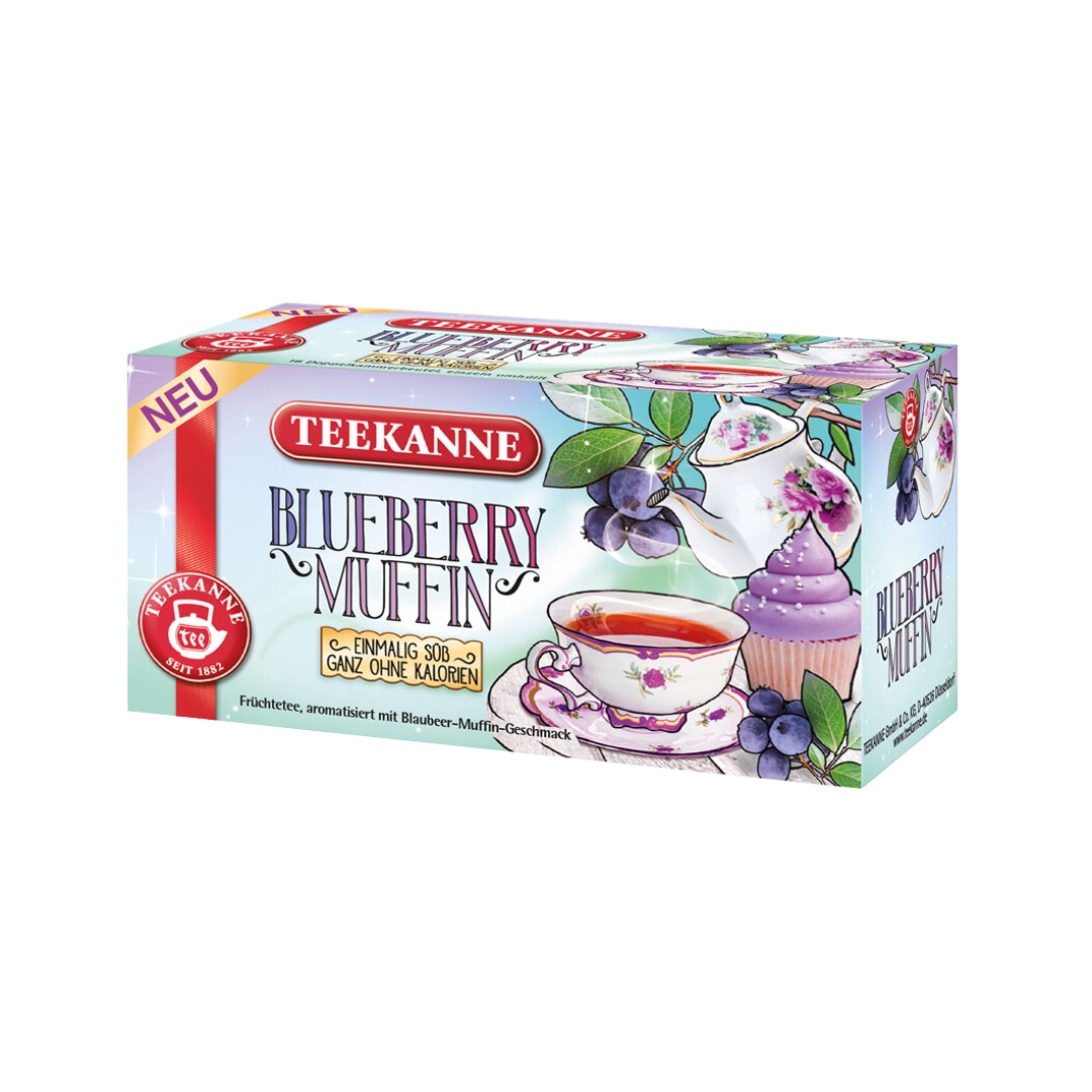 Teekanne Sweetea Blueberry Muffin, Früchtetee, 18 Teebeutel im Kuvert, 40.5g Früchtetee, aromatisiert mit Blaubeer-Muffin-Aroma Netto Füllmenge Nettogehalt 40.50 Gramm,Bruttogewicht 75.00 Gramm Allergene Zutaten Zutaten: Äpfel, Hibiskus, Hagebutten, Steviablätter, Muffinaroma, Heidelbeeraroma, Heidelbeeren Nährwerte pro 100g Zubereitet 1 Portion, Energie 16,00 kJ, Energie 4,00 kcal, Fett 0,10 g, davon gesättigte Fettsäuren 0,10 g, Kohlenhydrate 0,60 g, davon Zucker 0,40 g, Eiweiß 0,40 g, Salz 0,02 g , Zubereitet 100 Milliliter, Energie 2,00 kcal, Energie 8,00 kJ, Fett 0,10 g, davon gesättigte Fettsäuren 0,10 g, Kohlenhydrate 0,30 g, davon Zucker 0,20 g, Eiweiß 0,20 g, Salz 0,01 g Ursprungsland DEUTSCHLAND, BUNDESREPUBLIK Verwendung Sieden – Zubereitung der Speise in kochendem Wasser Nehmen Sie für eine Tasse 1 Teebeutel. Immer mit sprudelnd kochendem Wasser aufgießen und mindestens 5-8 Minuten ziehen lassen. Nur so erhalten Sie ein sicheres Lebensmittel! Marke TEEKANNE Hersteller Name: Teekanne GmbH,Adresse: Münchner Bundesstraße 120, A-5020 Salzburg