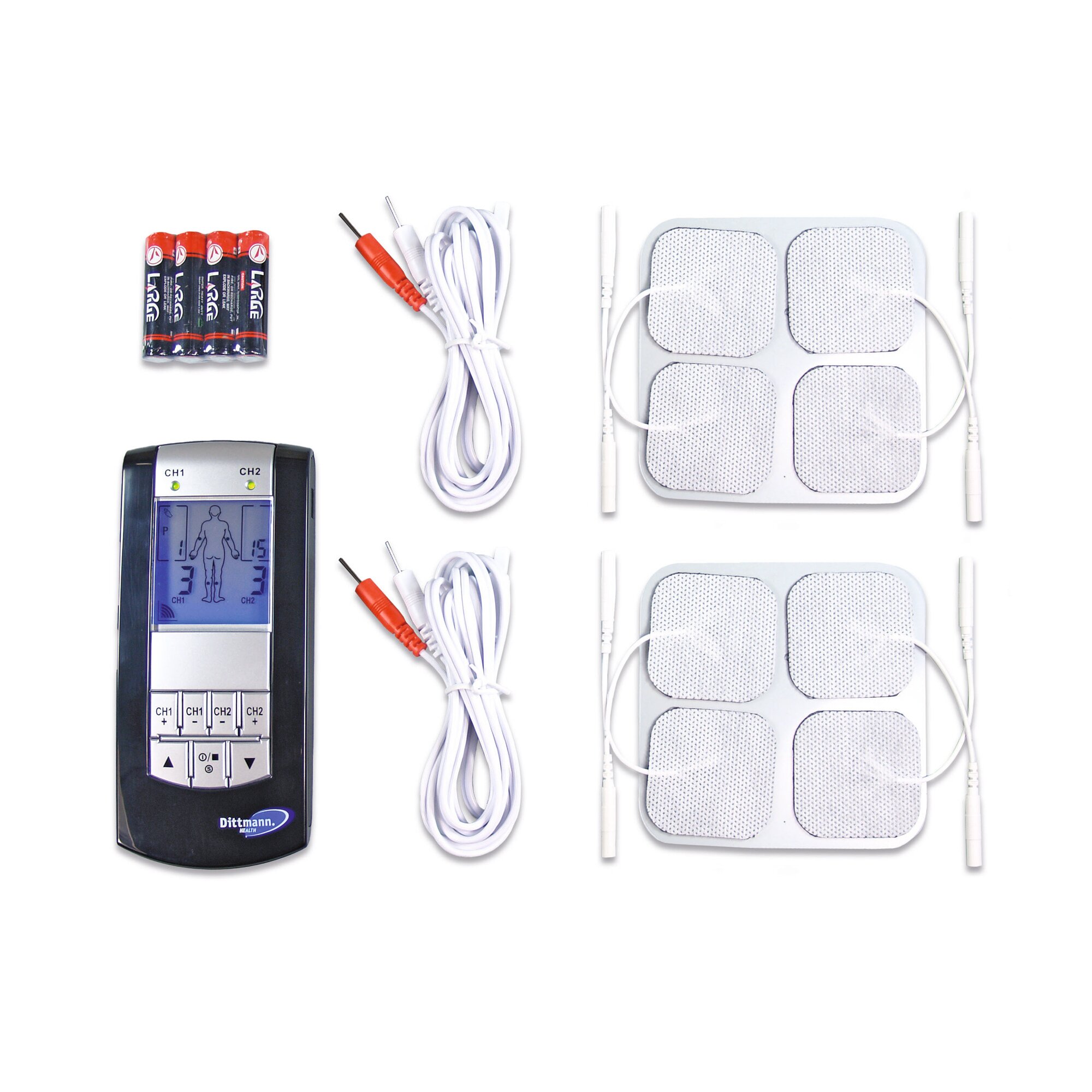 Tensgerät 240 natürliche Schmerzbehandlung durch Tensanwendung – Nervenstimulation durch Reizstrom- 2 Kanäle mit einstellbarer Intensität- LED Anzeige für jeden Kanal- 13 Anwenderprogramme- Blaue Display Hinterbeleuchtung- Anwendungs-Timerfunktion- Programmgesteuerter Frequenzbereich 2-120 Hz- Inhalt: 1 Tens Gerät, 8 Klebeelektroden, 2 Verbindungskabel