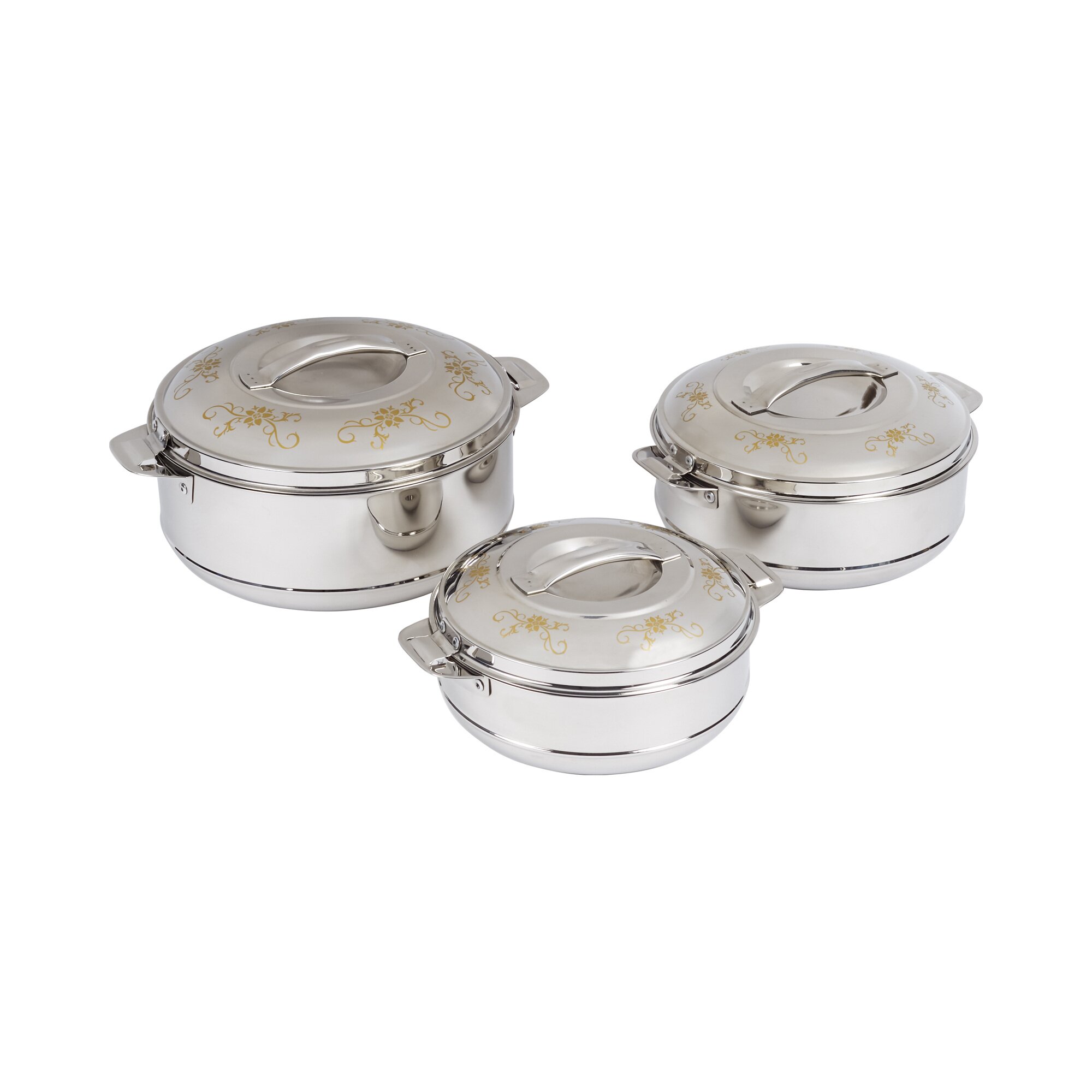 Wenn sich die Gäste verspäten oder Speisen längere Zeit auf dem Büffet bereitstehen, ist es wichtig, die Lebensmittel möglichst lange und gut warm zu halten, ohne dass sie nachgaren. So bleiben Fleisch und Fisch saftig und Gemüse knackig. Die Thermoschüssel Galant erfüllt nicht nur diese Aufgabe perfekt, sondern sieht dazu auch noch besonders edel aus.Galant ist das optische Erscheinungsbild der gleichnamigen Thermoschüssel allemal. Mit der Kombination aus silber und gold und dem zeitlos eleganten floralen Muster kann sich die Schüssel auf jeder Tafel sehen lassen. Doch der Küchenhelfer überzeugt nicht nur optisch, sondern auch funktionell:Die Schüssel aus Edelstahl eignet sich dank ihrer isolierenden Doppelwand hervorragend, um Speisen darin wahlweise kalt oder warm zu halten. Dazu am besten die Schüssel vor Gebrauch entweder mit heißem oder mit kaltem Wasser ausspülen. Dank passendem Deckel kommen die Speisen nicht mit der Außentemperatur in Berührung. So kann vorgekochtes Essen weder vorschnell abkühlen, noch können kalte Gerichte ungewollt warm werden. Wer seine Liebsten mit einer großen Portion seiner Lieblingsnudeln überraschen oder zum Grillfest der Verwandten einen gekühlten Kartoffelsalat mitbringen möchte, findet in der Thermoschüssel das passende Gefäß dazu. Zum Umfüllen oder Servieren lässt sich der Deckel mit einer einfachen Drehbewegung lösen.Diese Thermoschüssel ist zwar nicht spülmaschinengeeignet, lässt sich mit einem weichen Lappen und etwas Spülmittel aber im Handumdrehen per Hand reinigen.Die Thermoschüssel Galant ist ideal für alle, die später essen als geplant und ihr Essen am liebsten noch warm genießen, ohne es vorher in der Mikrowelle erwärmen zu müssen. Aber auch wenn Sie verschiedene Gänge eines Menüs kochen, die möglichst punktgenau und heiß serviert werden sollen, kann die Thermoschüssel Galant wertvolle Dienste leisten: Einfach einzelne Gerichte bis zum gewünschten Zeitpunkt warmhalten und dann alles gleichzeitig servieren. Tipp: Für solche Gelegenheiten die Thermoschüssel am besten im Set oder gleich in mehrfacher Ausführung kaufen!