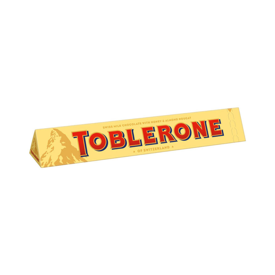 Toblerone Milch, Schweizer Milchschokolade mit Honig und Mandel, 100g Milchschokolade in der unverwechselbaren beigen Verpackung ist eine Kombination aus feinster Schweizer Milchschokolade mit Honig- und Mandel-Nougat. Schweizer Milchschokolade mit Honig- und Mandel-Nougat (10%). Kakao: 28% mindestens in der Milchschokolade. Netto Füllmenge Nettogehalt 100.00 Gramm,Bruttogewicht 107.00 Gramm Allergene VOLLMILCHPULVER, BUTTERREINFETT, MANDELN, SOJALECITHINE, EIKLAR Enthält – Ist im Produkt enthalten Sojabohnen und -erzeugnisse,Nüsse und Nusserzeugnisse. Kann Mandeln, Haselnüsse, Walnüsse, Cashewnüsse etc. einschliessen,Milch und Milcherzeugnisse,Eier und -erzeugnisse Aufbewahrung Trocken lagern und vor Wärme schützen. Zutaten Zutaten: Zucker, VOLLMILCHPULVER, Kakaobutter, Kakaomasse, Honig (3%), BUTTERREINFETT, MANDELN (1,6%), Emulgator (SOJALECITHIN), EIKLAR, Aroma. Nährwerte pro 100g Unzubereitet 1 Portion, Energie 132,00 kcal, Energie 552,00 kJ, Fett 7,10 g, davon gesättigte Fettsäuren 4,20 g, Kohlenhydrate 15,00 g, davon Zucker 15,00 g, Ballaststoffe 0,60 g, Eiweiß 1,40 g, Salz 0,03 g , Unzubereitet 100 Gramm, Energie 2.209,00 kJ, Energie 529,00 kcal, Fett 29,00 g, davon gesättigte Fettsäuren 17,00 g, Kohlenhydrate 61,00 g, davon Zucker 60,00 g, Ballaststoffe 2,40 g, Eiweiß 5,60 g, Salz 0,12 g Gütezeichen Kakao: 28% mindestens in der Milchschokolade. Ursprungsland SCHWEIZ Marke TOBLERONE Hersteller Name: Mondelez Österreich GmbH,Adresse: Schönbrunner Strasse 297-307 A-1120 Wien