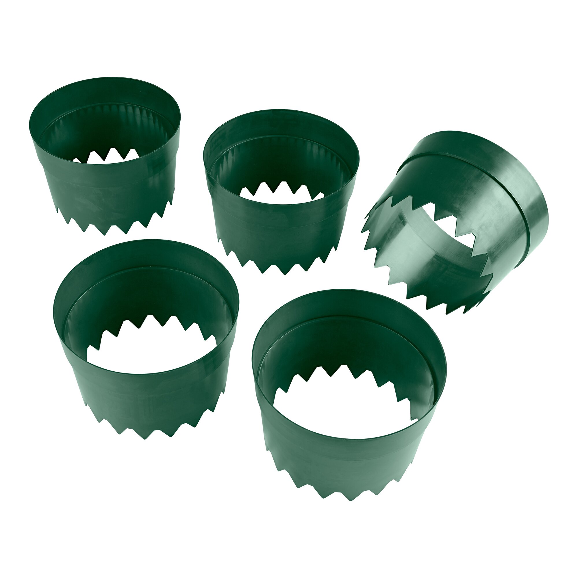Tomatenringe helfen beim Wassersparen! Dieser Tomatenring schafft optimale Wachstumsbedingungen für stark nährstoffbedürftige Pflanzen. Stecken Sie den Ring einfach mit seinen Spitzen fest in den Boden und verankern Sie ihn. So können Sie gezielt einzelne Pflanzen bewässern und unnötiges Versickern außerhalb der Wurzeln verhindern. Material: Kunststoff je Set = 5 Stück