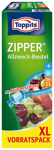 Toppits Zipper Allzweckbeutel 1 Liter XL, Frischhalte-/Aufbewahrungsbeutel, 28 Stück – (Anzeige) Netto Füllmenge Nettogehalt 28.00 Stück,Bruttogewicht 243.00 Gramm Allergene Ursprungsland POLEN Marke TOPPITS Hersteller Name: Melitta Gesellschaft GmbH,Adresse: Münchner Bundesstraße 131, 5020 Salzburg weitere Informationen Gefällt mir:Gefällt mir Wird geladen … Ähnliche Beiträge