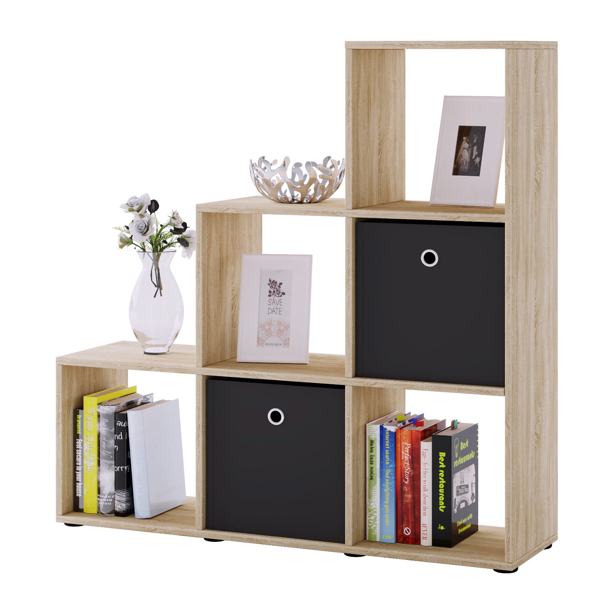 Modernes Treppenregal mit 6 Fächern. Holzstruktur-Nachbildung. In verschiedenen Farben erhältlich. Beliebig erweiterbar. Mit VCM Stoffboxen „Boxas“ kombinierbar. Lichtmaß der Fächer: H. 32,7 x B. 33,7 x T. 29 cm.