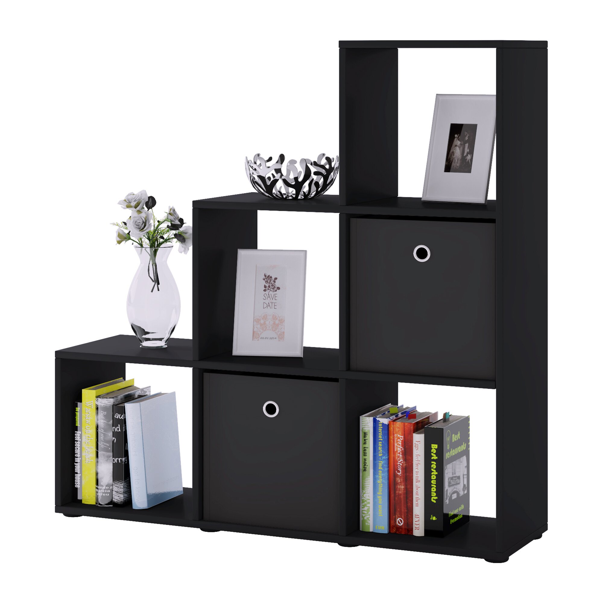 Modernes Treppenregal mit 6 Fächern. Holzstruktur-Nachbildung. In verschiedenen Farben erhältlich. Beliebig erweiterbar. Mit VCM Stoffboxen „Boxas“ kombinierbar. Lichtmaß der Fächer: H. 32,7 x B. 33,7 x T. 29 cm.