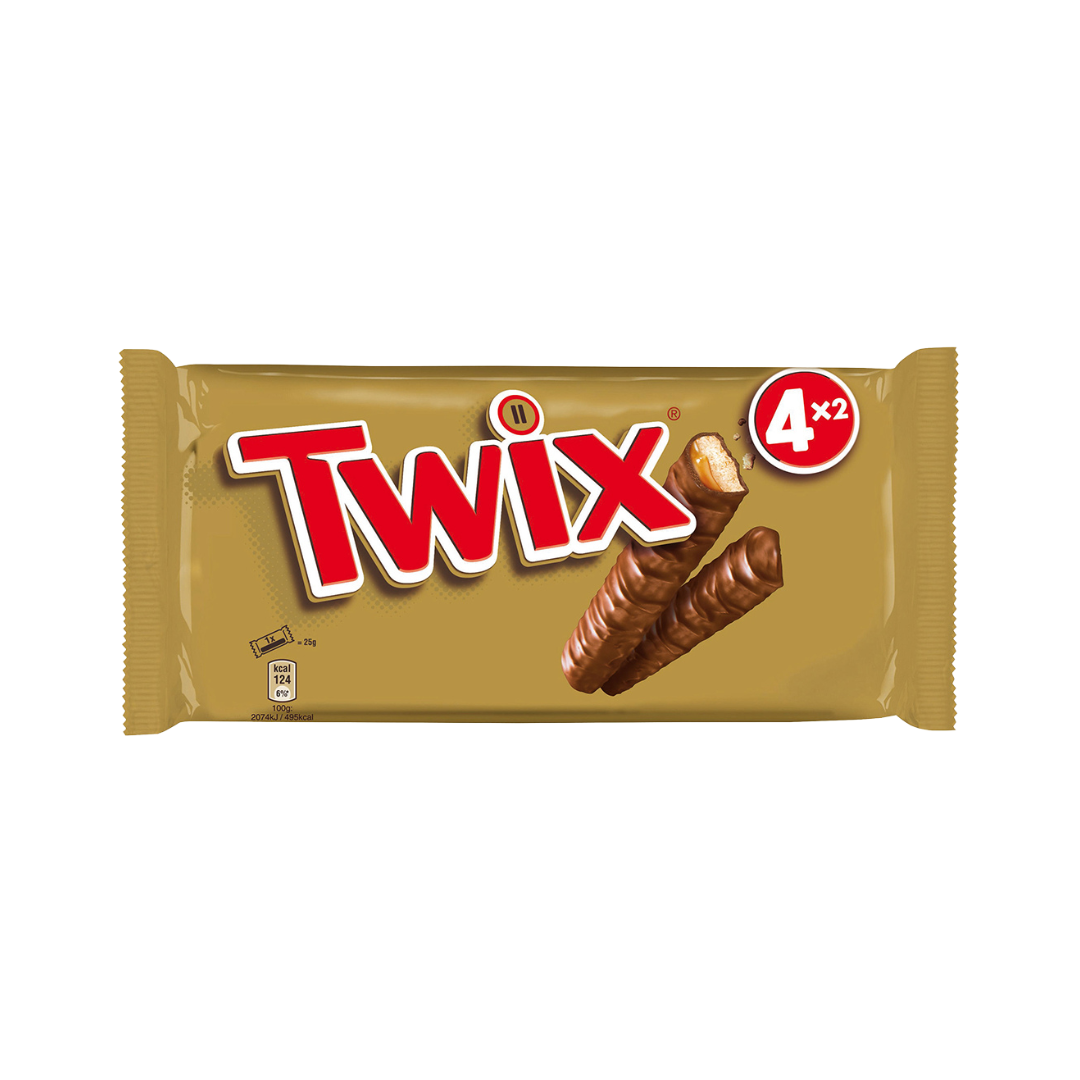 Twix, 4er Packung, 200 Gramm Knusperkeks (26%) mit zartem Karamell (32%) umhüllt von Milchschokolade (35%) Netto Füllmenge Bruttogewicht 211.70 Gramm,Nettogehalt 200.00 Gramm Allergene Kann Spuren enthalten von Nüsse und Nusserzeugnisse. Kann Mandeln, Haselnüsse, Walnüsse, Cashewnüsse etc. einschliessen,Enthält – Ist im Produkt enthalten Sojabohnen und -erzeugnisse,Glutenhaltiges Getreide sowie daraus hergestellte Erzeugnisse,Milch und Milcherzeugnisse Zutaten Zutaten: Zucker, Glukosesirup, WEIZENMEHL (17%), Palmfett, Kakaobutter, MAGERMILCHPULVER, Kakaomasse, MILCHZUCKER, Butterreinfett (aus MILCH), Süßmolkenpulver (aus MILCH), fettarmer Kakao, Salz, Emulgator (SOJALECITHIN), Backtriebmittel (E500), natürlicher Vanilleextrakt. (Kann enthalten: HASELNUSS, MANDEL, GLUTEN (GERSTE, HAFER)). Nährwerte pro 100g Unzubereitet 1 Portion, Energie 124,00 kcal, Energie 519,00 kJ, Fett 6,00 g, davon gesättigte Fettsäuren 3,50 g, Kohlenhydrate 16,10 g, davon Zucker 12,20 g, Eiweiß 1,10 g, Salz 0,11 g , Unzubereitet 100 Gramm, Energie 2.074,00 kJ, Energie 495,00 kcal, Fett 24,00 g, davon gesättigte Fettsäuren 13,90 g, Kohlenhydrate 64,60 g, davon Zucker 48,80 g, Eiweiß 4,50 g, Salz 0,44 g Ursprungsland Europäische Union Marke TWIX Hersteller Name: Mars Austria OG,Adresse: 7091 Breitenbrunn,Telefon: +432162 601 0,Email: contact@at.mars.com