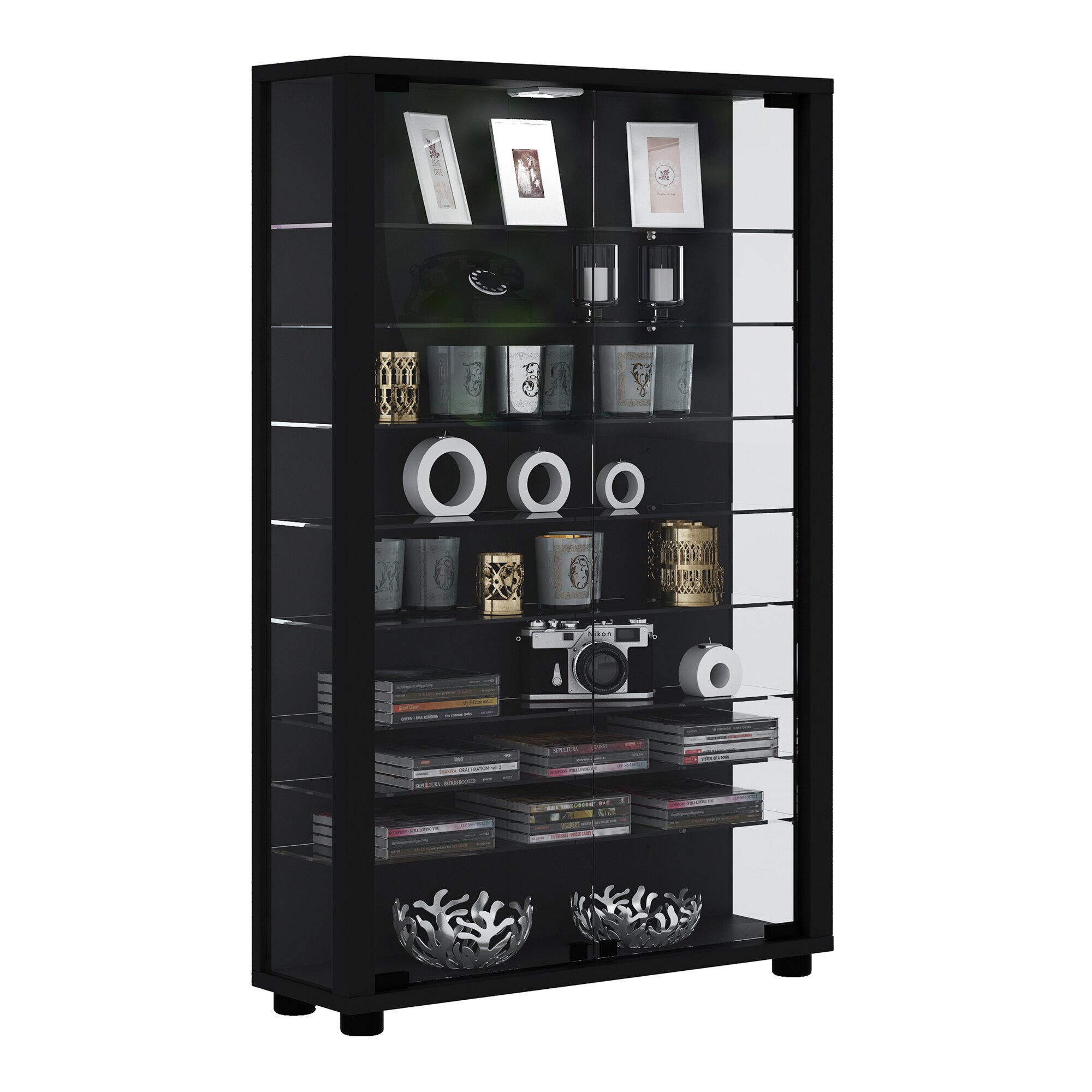 VCM Standvitrine „Lumo Mini“ für Sammlerschätze wie Modellautos, Figuren, Züge, Kosmetik, Kristalle, Uhren, Muscheln etc. Universell einsetzbar. Die Glas-Vitrine beinhaltet 8 variable Glas-Einlegeböden und 2 Türen aus ESG-Sicherheitsglas. Mit 4 Standfüßen. Einfache Montage. Holzstruktur-Nachbildung. Die Lieferung erfolgt zerlegt inkl. Montageanleitung und Montagematerial.