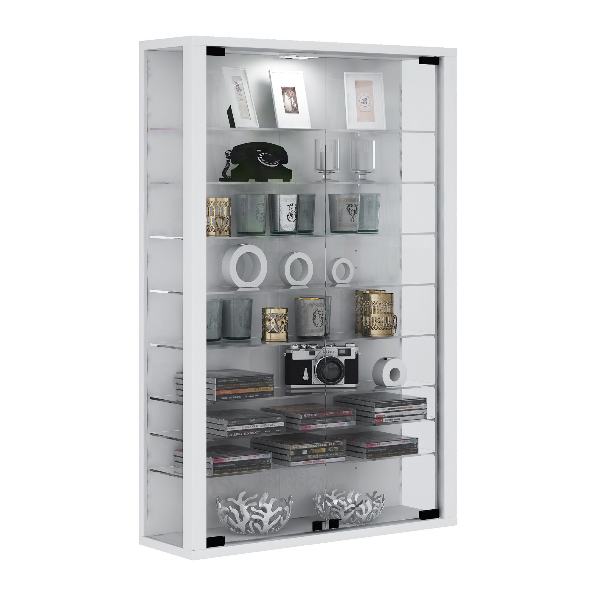 Das Grundgerüst besteht aus Holz mit einer stabilen Rückwand. Mit 8 Einlegeböden, die Seitenteile und Glastüren bestehen aus ESG-Sicherheitsglas. Einfache Wandmontage möglich. Holzstruktur-Nachbildung. Die Lieferung erfolgt zerlegt inkl. Montageanleitung und Montagematerial.