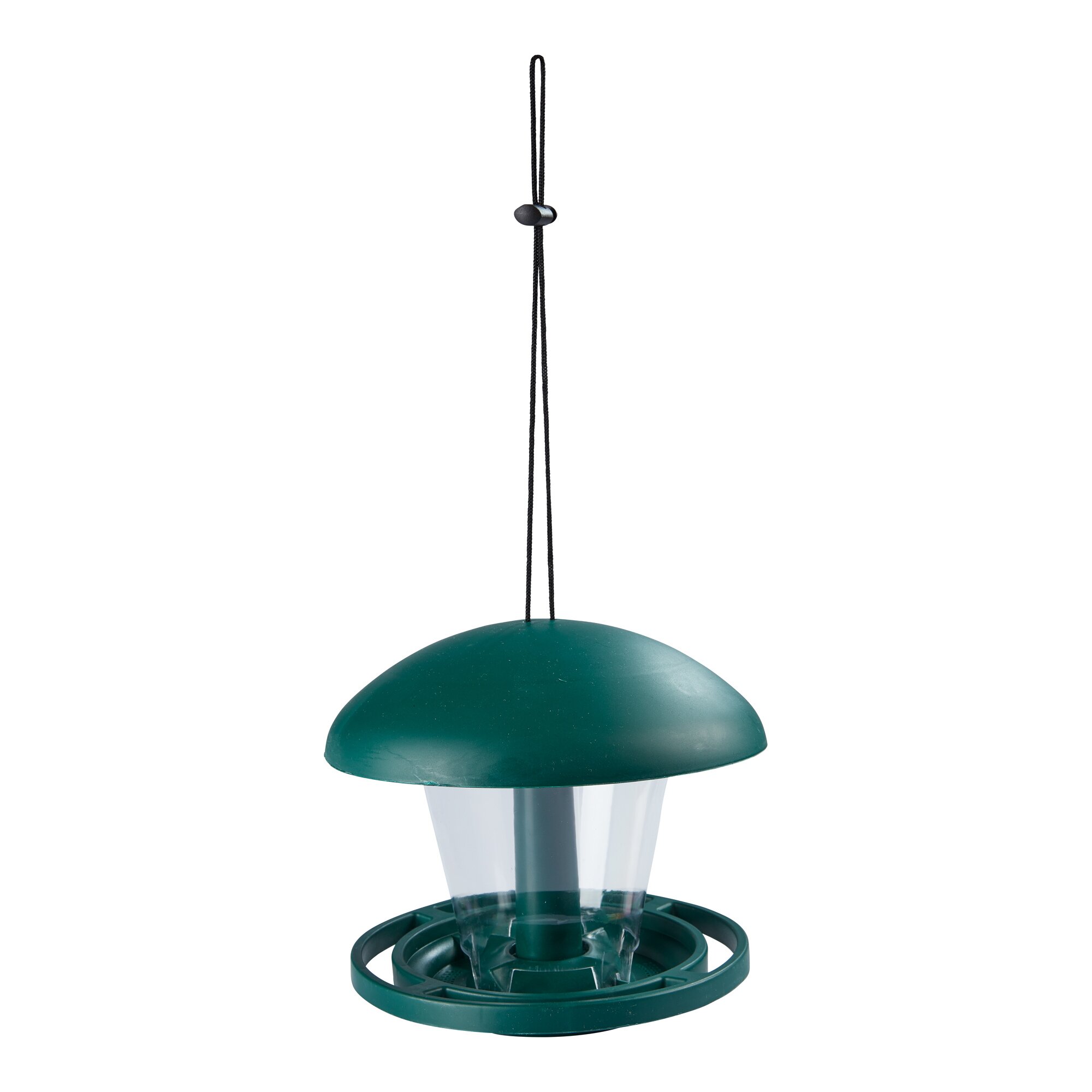 Raststätte für Piepmätze! Gönnen Sie vorbeiziehenden Vögeln eine Verschnaufpause bei Ihnen! Dieser Vogelfutter-Platz ist im Nu aufgehängt und verfügt fürs einfache Befüllen über ein hochziehbares Dach. Material: Kunststoff