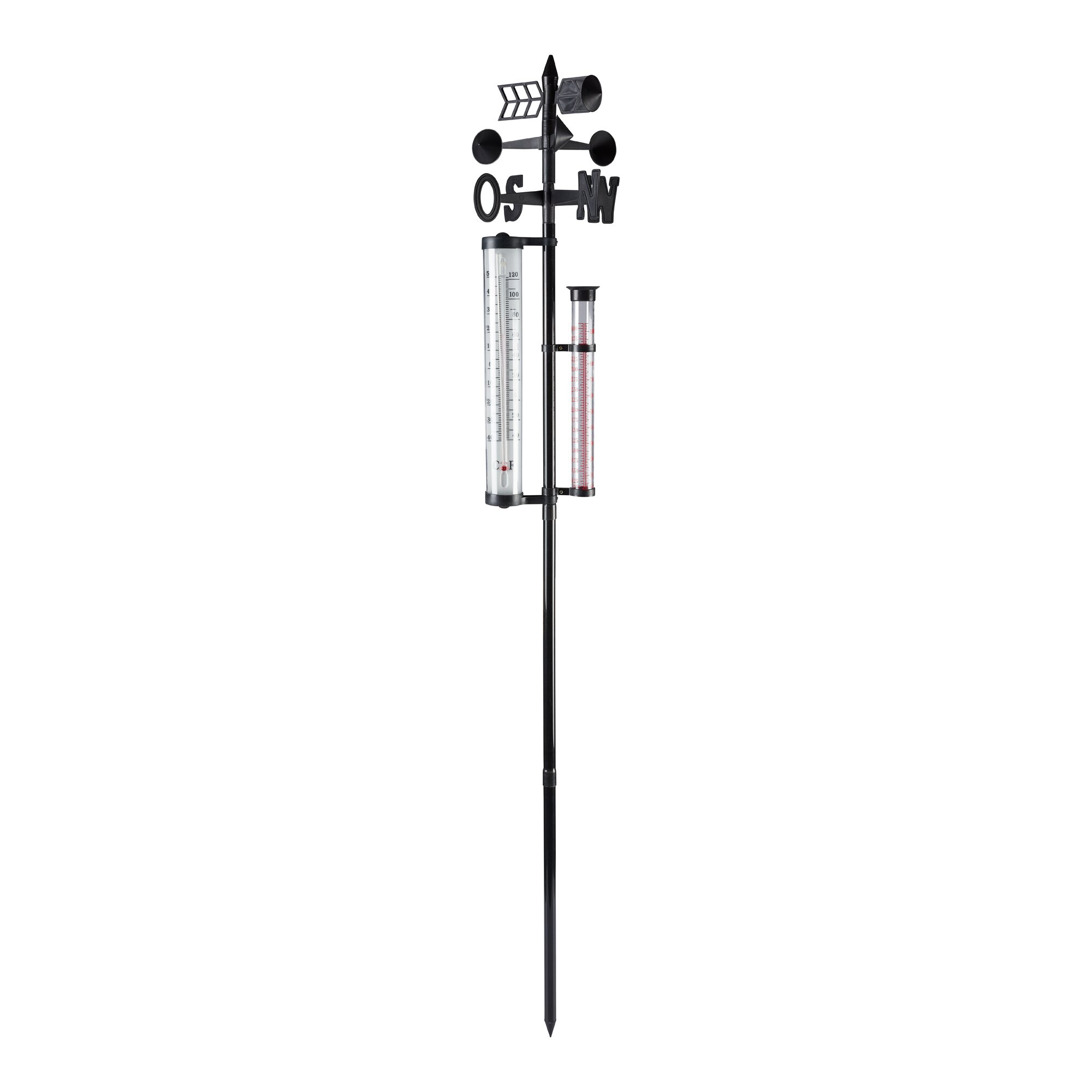 Ab jetzt wissen Sie, woher der Wind weht! Diese Wetterstation misst für Sie Temperatur, Windrichtung und gefallene Regenmenge. Dabei ermöglicht sie Ihnen das Ablesen der ermittelten Daten ganz mühelos! Inklusive Erdspieß für eine leichte Befestigung im Boden. misst Temperatur, Windrichtung & Niederschlag Material: Wetterfester Kunststoff