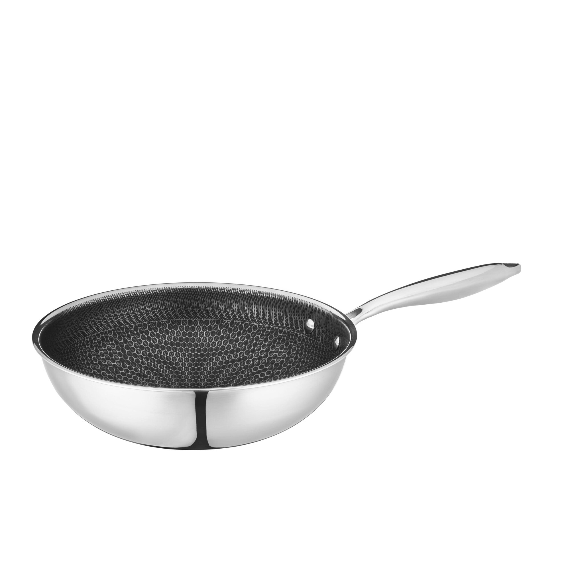 Gesund und fettarm Braten ohne auf die lecker krossen Röstaromen zu verzichten – das geht jetzt ganz einfach mit der Serie Hestia. Die Edelstahl-Pfannenserie der österreichischen Traditionsmarke Mäser erfüllt die Erwartungen all jener Hobbyköche, die Fleisch und Gemüse scharf anbraten wollen, ohne dass etwas anklebt. In den Pfannen wird über die Antihaftbeschichtung eine spezielle Edelstahl-Wabenstruktur gelegt, die auch die Optik bestimmt. Die Kombination aus beiden Schichten erlaubt das scharfe Anbraten mit nur wenig Fettzugabe und verhindert gleichzeitig, dass das Fleisch oder anderes Bratgut haften bleibt. Die Edelstahlpfannen und der Wok sind für Elektro-, Gas- und Induktionsherd geeignet. Zur einfachen Reinigung empfehlen wir einen weichen Schwamm und etwas Handspülmittel.Bodenstärke: 5,0 mmDurchmesser: 30 cmFarbe: Schwarz / SilberGröße: 30Material: Edelstahl 18/10Personenanzahl: 4Serie: HestiaVerzierungsfarbe: Farbig ohne DekorWandstärke: 2,5 mm