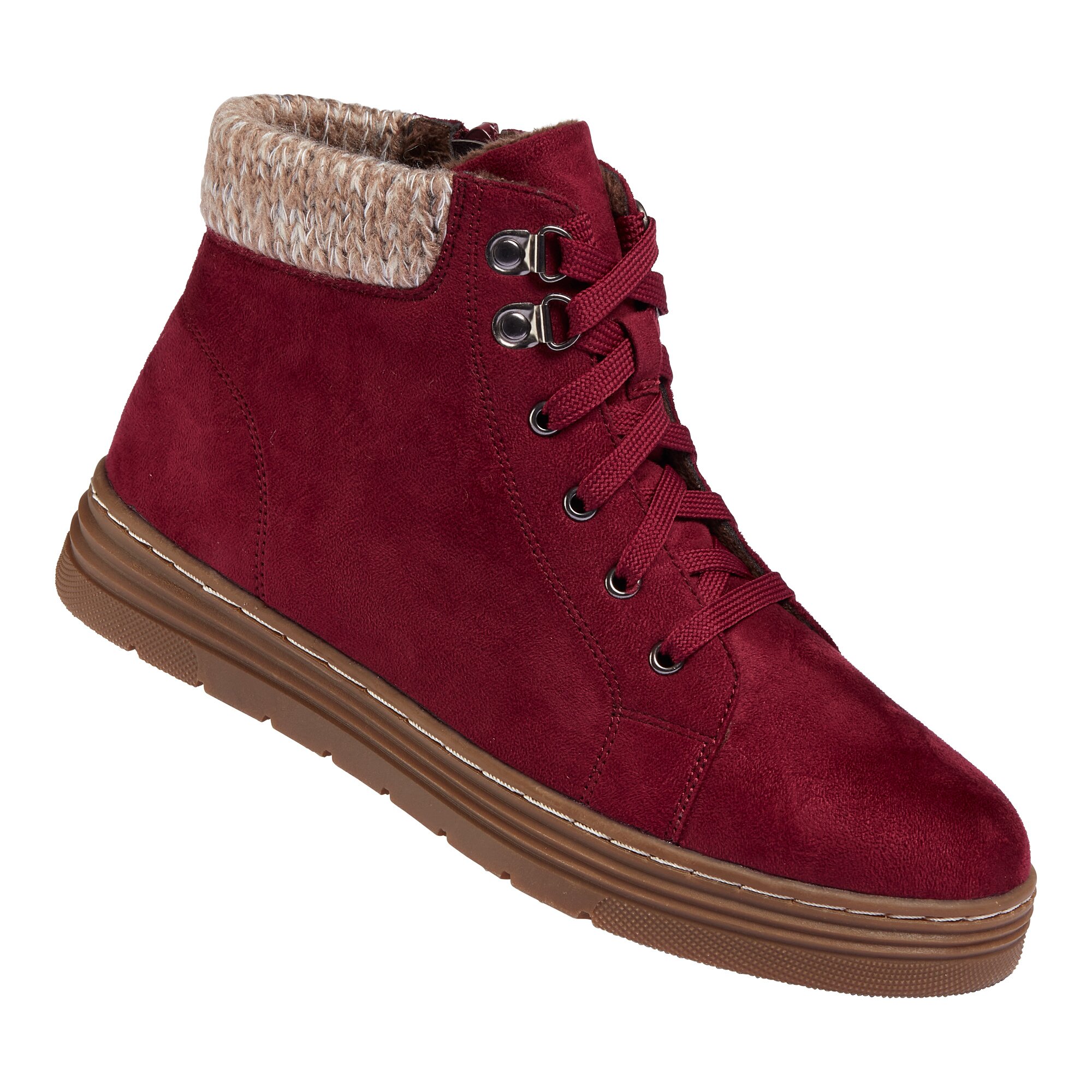 mit Reißverschluss gestrickter Einsatz Typisch Wonderwalk: Der leichte, modische Knöchel-Sneaker in Veloursleder-Optik überzeugt mit seinem gestrickten, wärmenden Einsatz am Abschluss und der Ziernaht an der rutschhemmenden, trendigen Gummi-Laufsohle. Doppelkomfort: Der Ein- und Ausstieg erfolgt, ohne schnüren zu müssen, durch den seitlichen Reißverschluss. Mit weicher Decksohle.