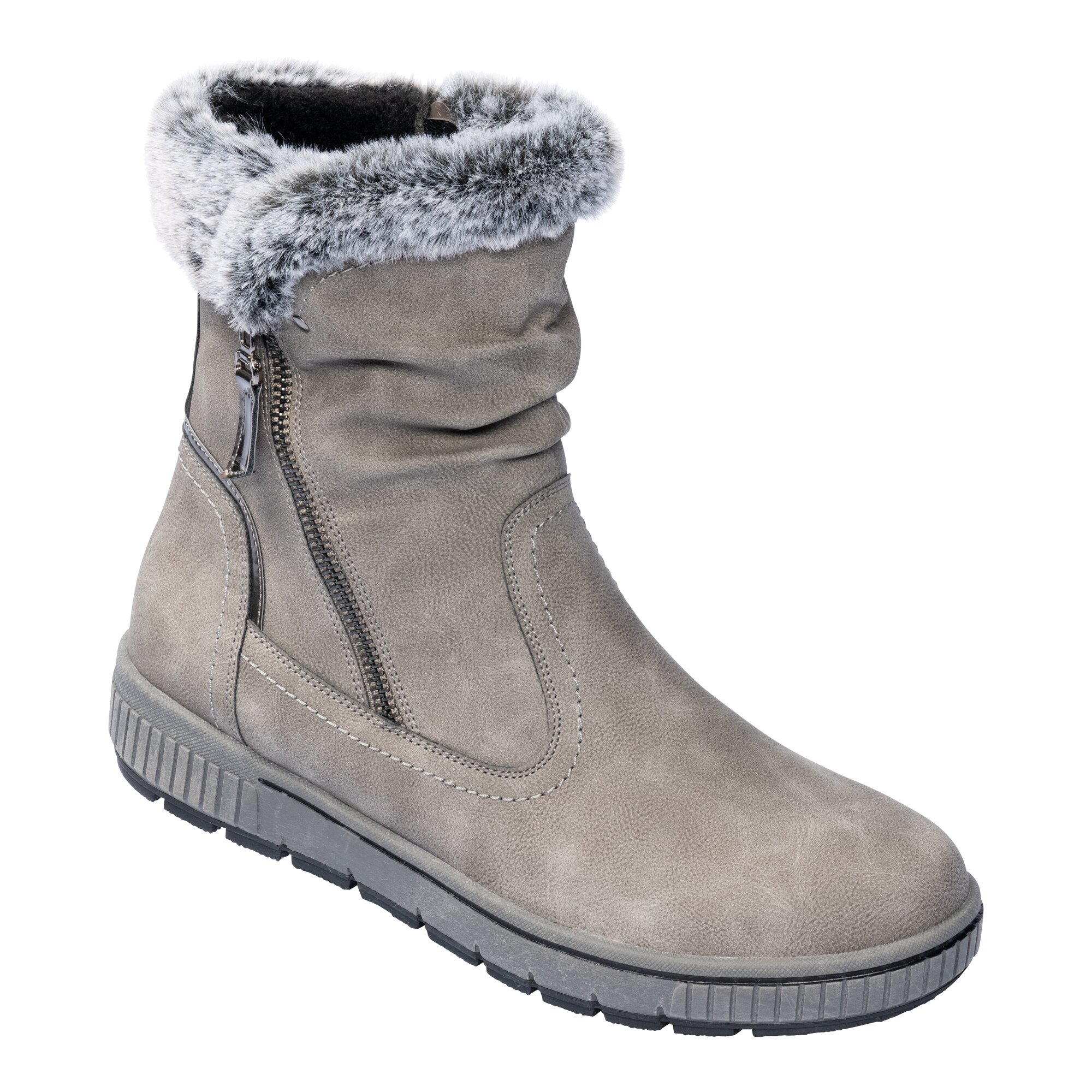 Dieser komplett gefütterte Winterstiefel trägt Sie mit Stil und Komfort durch den Winter: Das weiche Kunstfell-Futter hält Ihre Füße kuschelig warm und sorgt für ein angenehmes Tragegefühl. Der Reißverschluss an der Innenseite ermöglicht ein schnelles An- und Ausziehen, während ein Zier-Reißverschluss außen modische Akzente setzt. Mit rutschhemmender Profil-Laufsohle für einen sicheren Tritt.
